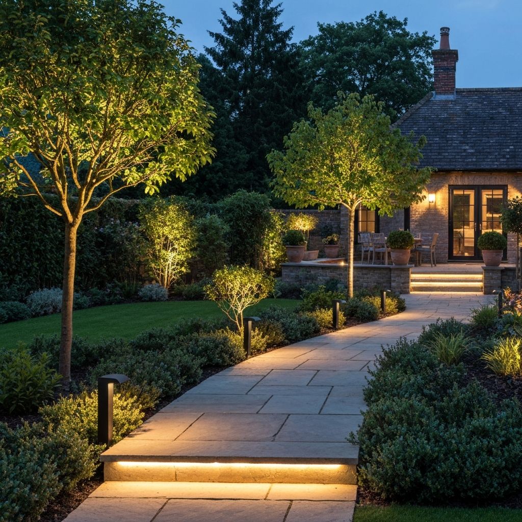 Create magical atmospheres with carefully positioned lighting that highlights your garden's best features and creates inviting outdoor spaces.